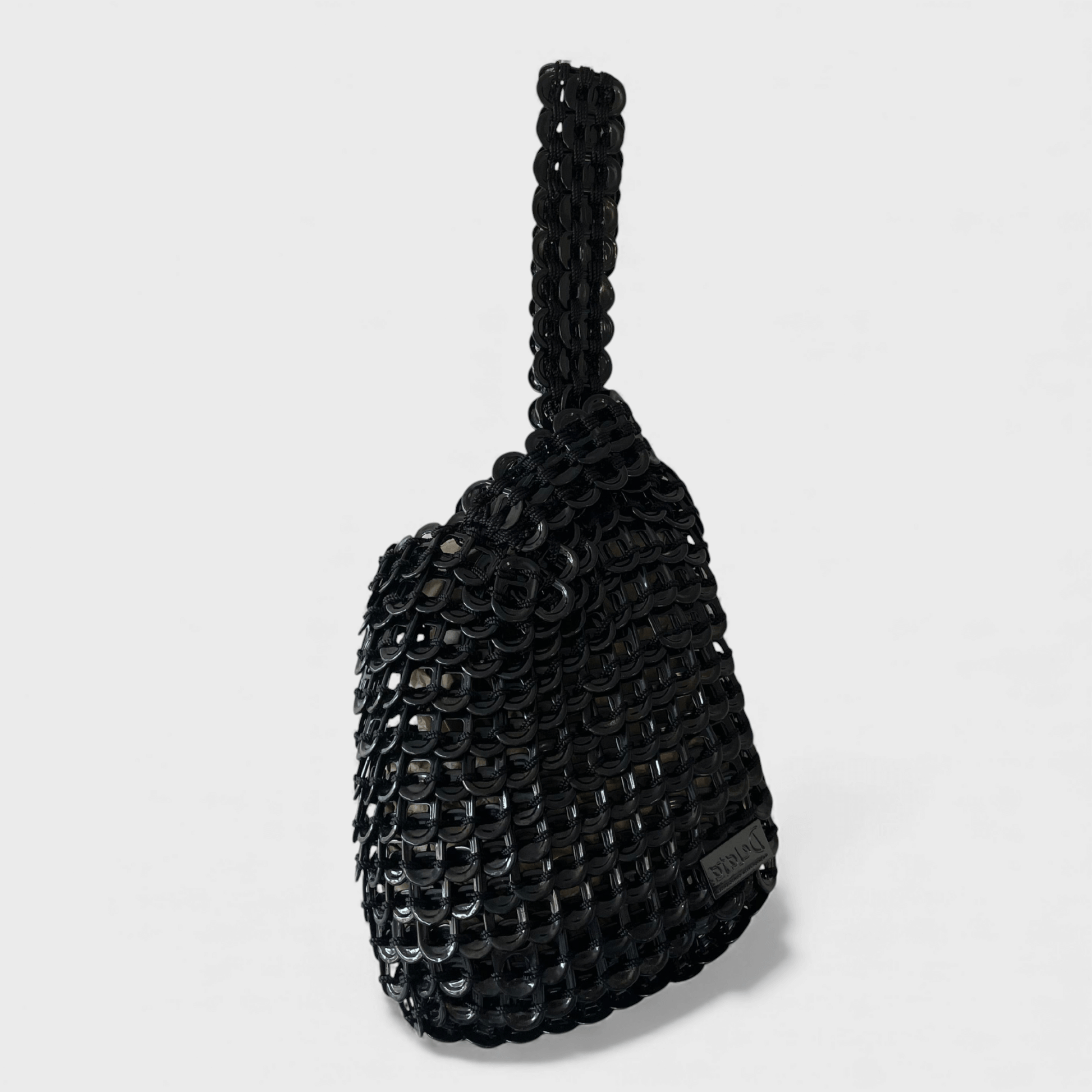 The all-black collection takes our craftsmanship one step further: each pull tab is dry-painted by hand, adding extra time, care, and detailing to every piece. Handcrafted from recycled aluminum pull tabs, each bag is meticulously hand-polished, hand-crocheted, and painted by skilled artisan partners, transforming sustainable materials into wearable art.